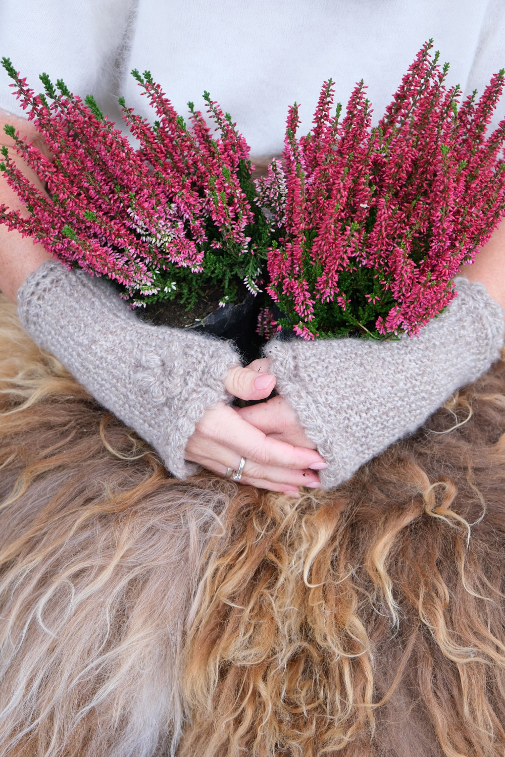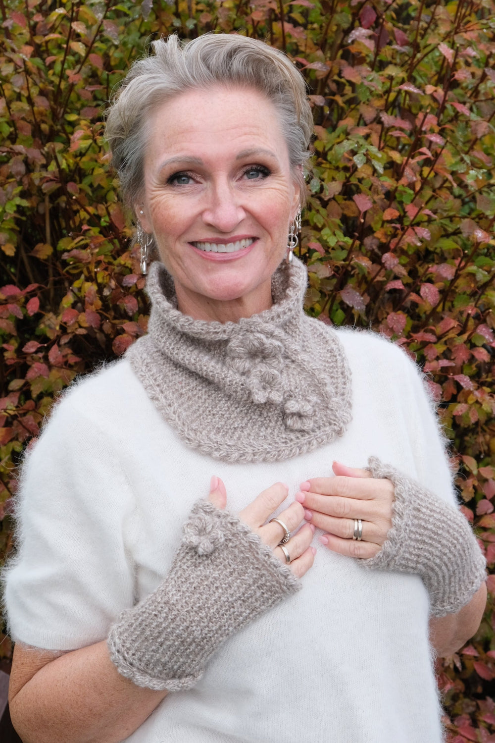 Ca. 35 g per par, inkl. 1 stor og 1 liten blomst på hver vante