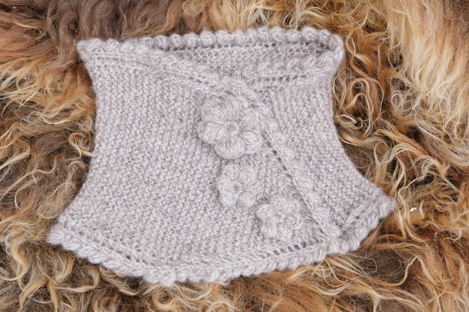 Lengde / høyde: ca. 19 cm inkl. heklet boblekant rundt begge åpninger