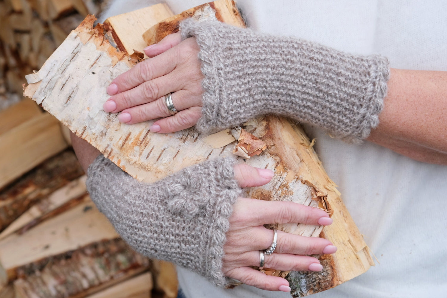 Pulsvantene strikkes i rettstrikk (riller) fram og tilbake på p på høykant. Arb starter og slutter med tommelkile, som formes ved hjelp av forkorta pinner. Oppleggs- og avfellingskant strikkes sammen samtidig som de felles av, og det hekles en dekorativ boblekant rundt åpningen i begge ender.